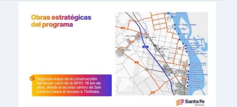 Porque la Provincia consiguió u$s 150 millones de dólares de la CAF (más una contraparte por u$s 37 millones que deberá aportar) para encarar una paquete de obras viales que, esperan, solucione de una vez por todas el problema del caos logístico que ocurre cuando llega la cosecha armando una red de acceso directos as puertos sin interferir con el tránsito residencial y urbano.