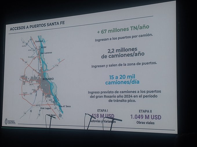 Ayer, en el marco de la convención anual de la Cámara Argentina de la Construcción, el secretario de Obras Públicas de la Nación, Luis Giovine, hizo público el "acuerdo y total apoyo a la concesión a Santa Fe de rutas nacionales en tramos de accesos a puertos de Rosario con futuro mantenimiento por peaje".