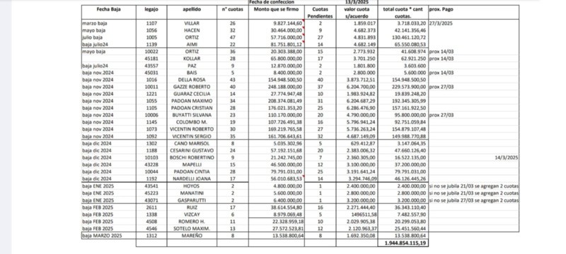 Lo que despierta sospecha es que todos se dieron la baja apenas terminada la intervención judicial, que finalizó en agosto de 2024. A continuación, todos los datos en el cuadro publicado por los veedores: