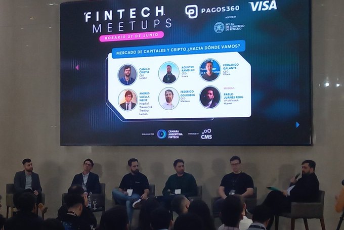 Los disertantes fueron Camilo Cristia (CEO, Let'sBit) y Andrés Vilella Weisz (Head Treasury & Trading, Lemon), de reconocidas firmas del sector cipto, y Agustin Ramello de la Vega (CEO, Invera), Fernando Galante (CEO, Ohana) y Federico Goldberg (CEO, Manteca), del sector de inversiones financieras tradicionales.