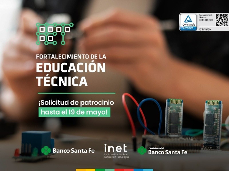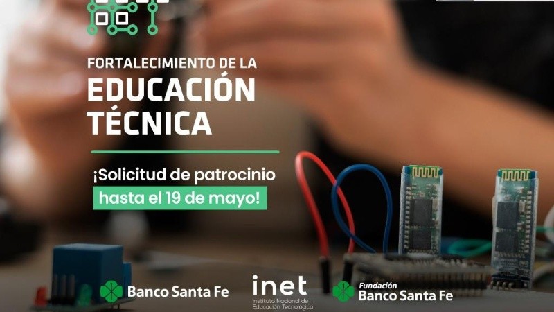 Los establecimientos educativos interesados en contar con patrocinio del Banco Santa Fe podrán consultar requisitos y solicitar el patrocinio hasta e. 19 de mayo inclusive en: https://www.fundacionesgrupopetersen.com.ar/fortalecimiento-de-la-educacion-tecnica/. La presentación de proyectos ante INET será hasta el 31 de mayo, según información publicada en la web oficial de dicho organismo.