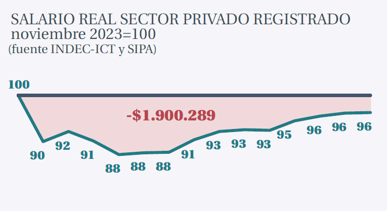 "Desde que gobierna Milei, cada trabajador registrado en el sector privado perdió, en promedio, casi dos millones de pesos", estimó Mate.