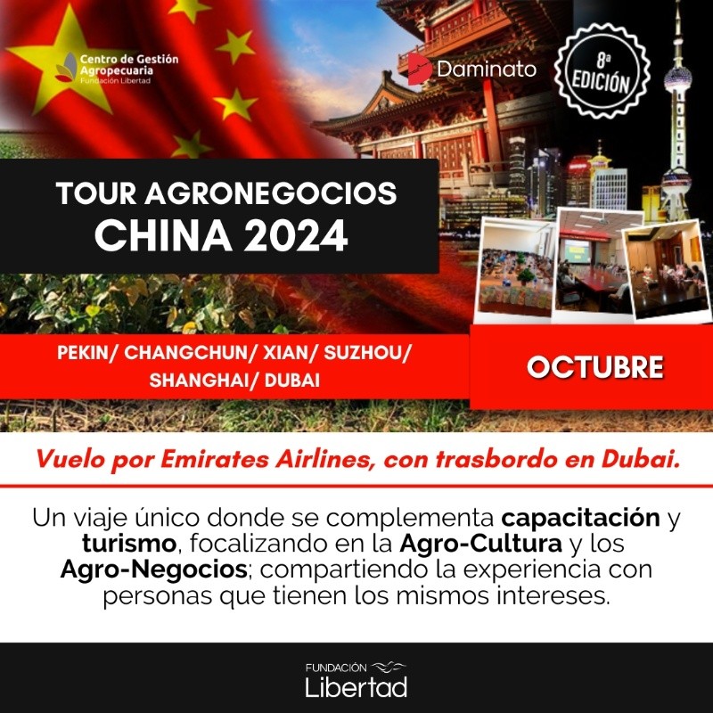 Se viene la octava edición del Tour de Agronegocios China 2024. Y el viaje es promocionado por la agencia rosarina de turismo Daminato, junto con el Centro de Gestión Agropecuaria de la Fundación Libertad.