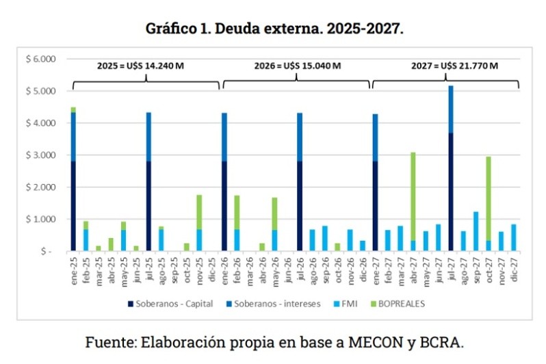 En paralelo, la situación también representa una amenaza en el frente cambiario y, por lo tanto, una encrucijada para el proyecto impulsado por Javier Milei. "En los próximos tres años, Argentina tendrá que pagar 50.000 millones de dólares de vencimientos. Y esos dólares, el país no los produce genuinamente", apuntó Calore.