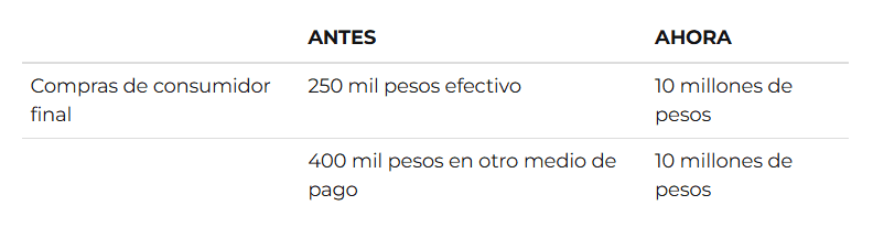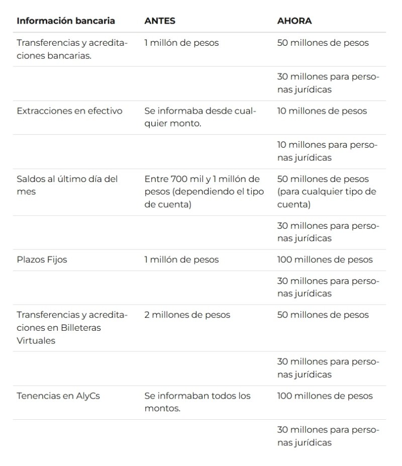En otro sentido, se actualizarán los montos de los umbrales para el reporte de operaciones financieras de la siguiente manera: