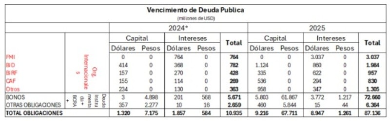 Y luego apuntó: "Nadie duda que los vencimientos de capital en lo que resta del año 2024, van a poder ser refinanciados. Aunque hay más dudas sobre los vencimientos que vencen durante 2025, el ministerio de economía considera que también podrán ser refinanciados".