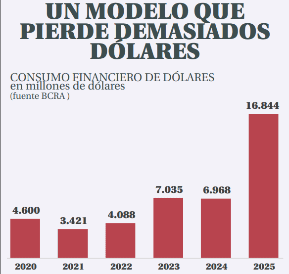Ese desbalance entre lo que entra y lo que sale, que en materia de gastos e ingresos al fisco el Gobierno libertario considera mala palabra, en este caso se acelera. Para Mate, la única forma de sostener esta dinámica es con más deuda. Sin créditos, "la pérdida de reservas y la devaluación serán inevitables".