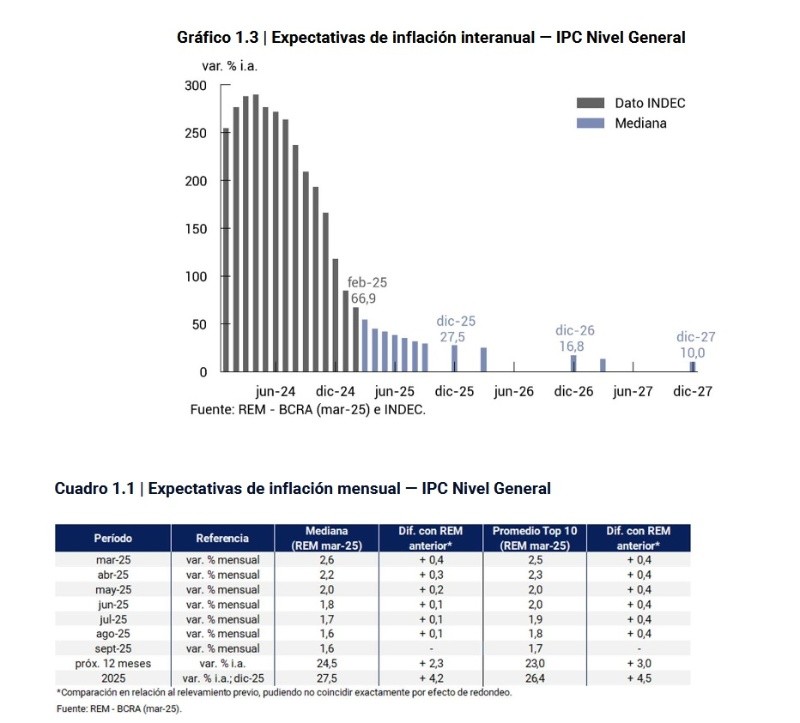 En un contexto marcado no solo por la incertidumbre sobre el esquema cambiario que adoptará el Gobierno argentino, sino además por la política arancelaria impulsada por Donald Trump desde Estados Unidos, el Banco Central difundió el lunes el nuevo Relevamiento de Expectativas de Mercado (REM), en el que las consultoras y entidades financieras consultadas ajustaron al alza sus proyecciones de inflación para este año.