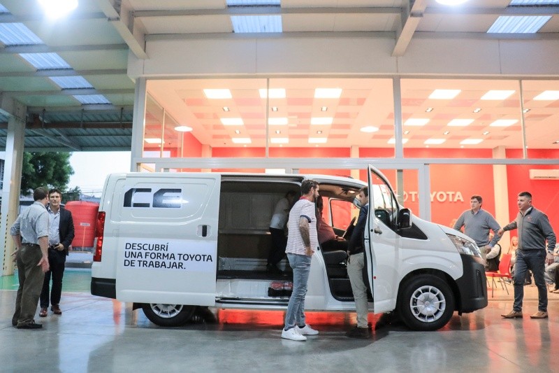 En la presentación del novedoso vehículo comercia. en las instalaciones de Ginza en Avellaneda 2075, estuvieron presente. Jorge Lascano y Andrés Sánchez, fieldman de Ventas Convencionales y Ventas Corporativas de Toyota Argentina, y Manuel Diez Peña, Joaquín Palladino y Cristóbal Cebral, responsables de producto de Toyota Argentina.