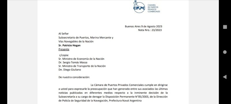 El pasado 9 de agosto la Cámara de Puertos Privados, que reúne a las principales terminales cerealeras multinacionales, le envió una carta al subsecretario de Puertos y Vías Navegables de la Nación, Patricio Hogan, preocupada por las versiones que le llegaran sobre una nueva avanzada estatal sobre la hidrovía.