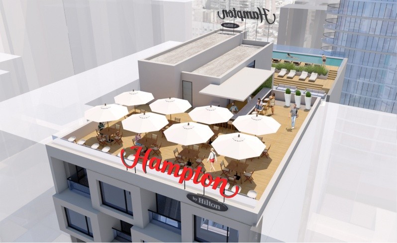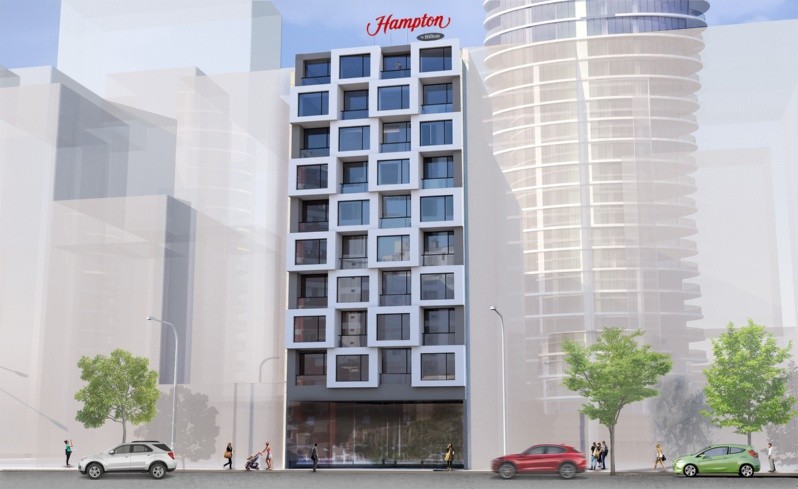 En el centro de Rosario se implantará una obra de importante magnitud que tendrá como epicentro al hotel Hampton by Hilton, pero que además contará con una torre de departamentos en 23 pisos (IconApartments), espacios comerciales, oficinas y parking subterráneo. El desarrollo se emplazará en la manzana comprendida entre las calles Santa Fe, España, San Lorenzo y Presidente Roca, con accesos por estas dos últimas.