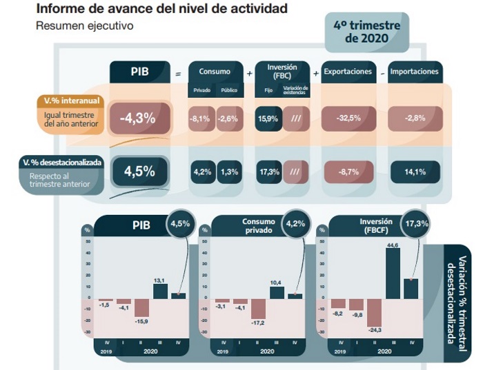 El producto interno bruto (#PIB) creció 4,5% en el 4° trimestre de 2020 en relación al período previo https://t.co/uqEvhzM9j9 pic.twitter.com/tRci8EKpy4