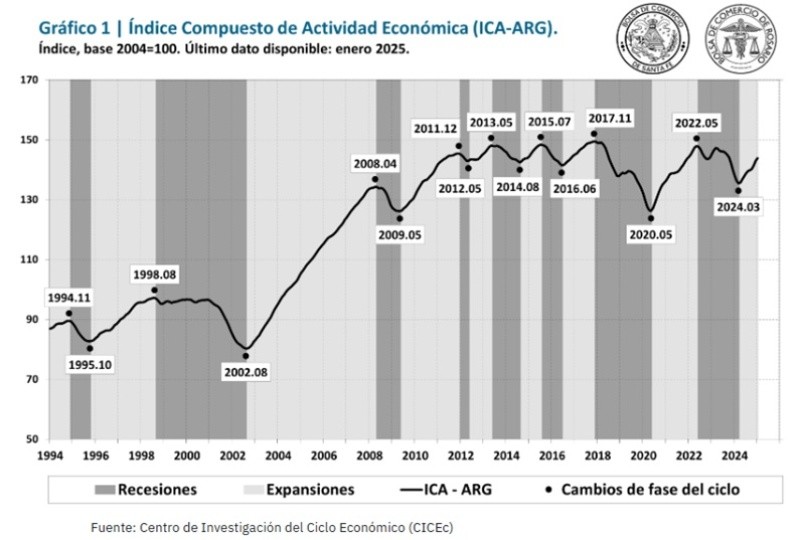 "Desde el punto más bajo en marzo de 2024, la economía argentina ha experimentado una recuperación del 6,2%, superando el promedio de las siete fases expansivas anteriores (5,8%)", señaló en sus conclusiones el Índice Compuesto Coincidente de Actividad Económica de Argentina (ICA-ARG).