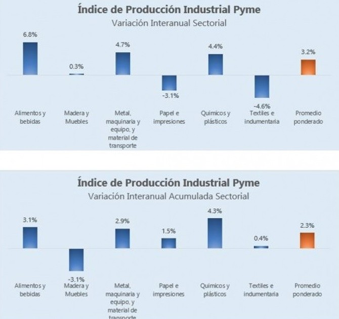 Según el Índice de Producción Industrial Pyme (IPIP), en diciembre, el uso de la capacidad instalada de las pymes se ubicó en 72,9 por ciento lo que representó un incremento de 1,2 puntos porcentuales respecto de noviembre, en el que se destacó el rubro “Papel e impresiones” (79,1%), mientras que el más bajo fue “Químicos y plásticos” (70,1%).