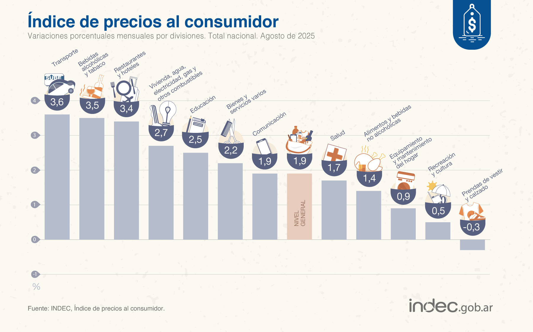 De esta manera, el número volvió a ser igual al de julio de 2025 cuando el Indec también había informado el 1,9% marcando un leve rebote respecto a junio.