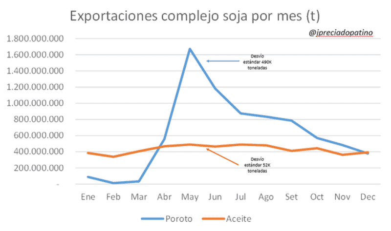 Pero quienes defienden el diferencial también esgrimen otras razones claves del mercado que el excel fiscalista no toma en cuenta. “La industria aceitera compra soja, procesa y exporta parejo a lo largo del año. La exportación aparece en el pico de cosecha y después se retrae. En la industria, el productor siempre va a encontrar mercado 24x7x12. Y esto le defiende el precio”, dijo el ex subsecretario de Mercados de la Nación, Javier Preciado Patiño.