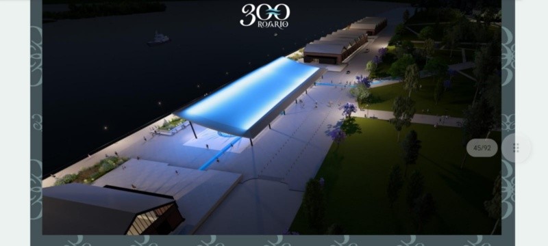 Además, entre los galpones 13 y 15 se levantará una estructura abierta que refleja las letras “Rosario” en el piso, creando una zona de atracción turística. La puesta lumínica está basada en los colores celeste y blanco de la bandera.