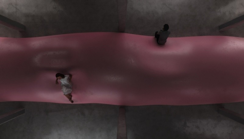 “En este caso, la obra remite al ingenio local, que ante la necesidad, reconvierte las sobras de silobolsas en cubierta para sus casas, piletas para sus veranos y sombras para sus animales. El Pabellón Argentino se ofrece como continuación de esta cadena ingeniosa como un gran objeto de descanso”, explican los jurados.