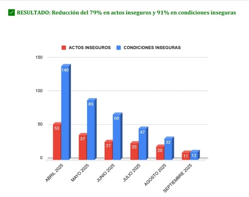 1. Los actos inseguros y condiciones inseguras han mostrado una reducción del 79% y 91% respectivamente, evidenciando la efectividad del sistema de gestión preventiva.