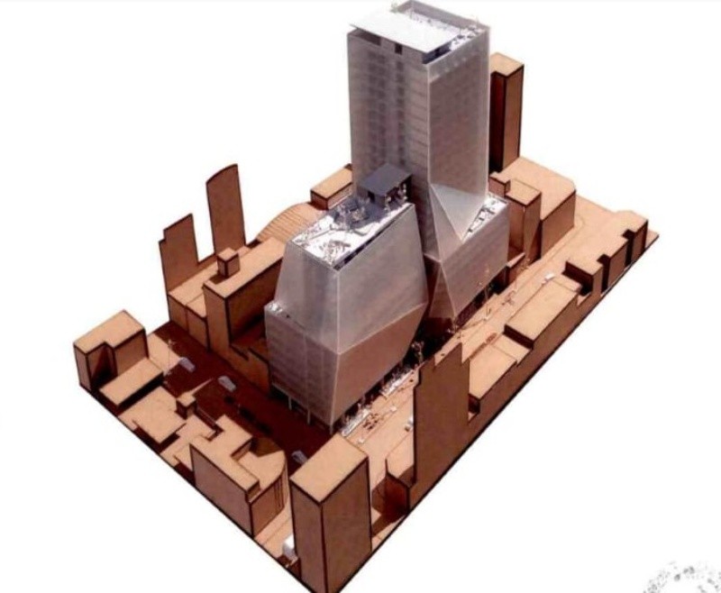 El proyecto, que lleva la firma del arquitecto Ezequiel Quijada, se levantará sobre un terreno de 2.991,57 m2, con un frente urbano de 76,52 metros lineales sobre calle Corrientes y de 25,21 metros lineales sobre calle San Lorenzo y la torre central tendrá una altura de 54 metros.