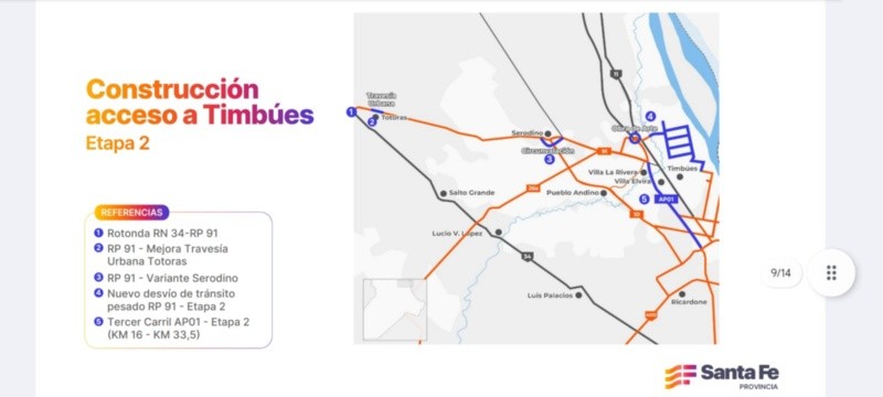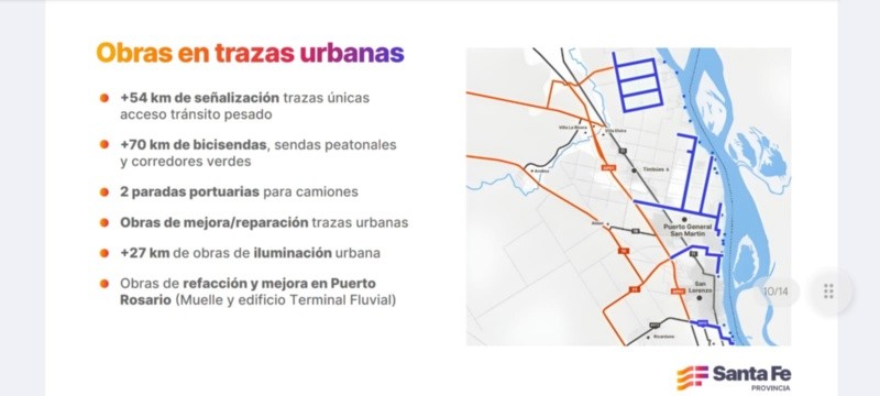 Porque la Provincia consiguió u$s 150 millones de dólares de la CAF (más una contraparte por u$s 37 millones que deberá aportar) para encarar una paquete de obras viales que, esperan, solucione de una vez por todas el problema del caos logístico que ocurre cuando llega la cosecha armando una red de acceso directos as puertos sin interferir con el tránsito residencial y urbano.