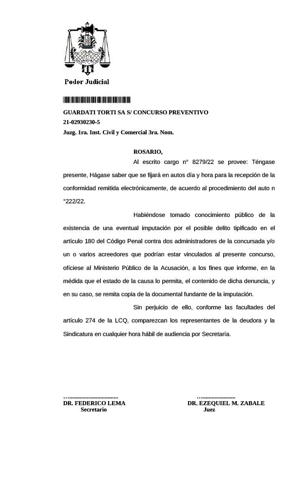¿Y ahora cómo sigue el concurso? Claramente queda muy complicado. Como se muestra en el documento adjuntado abajo de este párrafo, ahora el juez comercial Ezequiel Zabale, quien lleva la convocatoria de GyT, le pidió por escrito a los fiscales toda la información sobre las investigaciones penales.