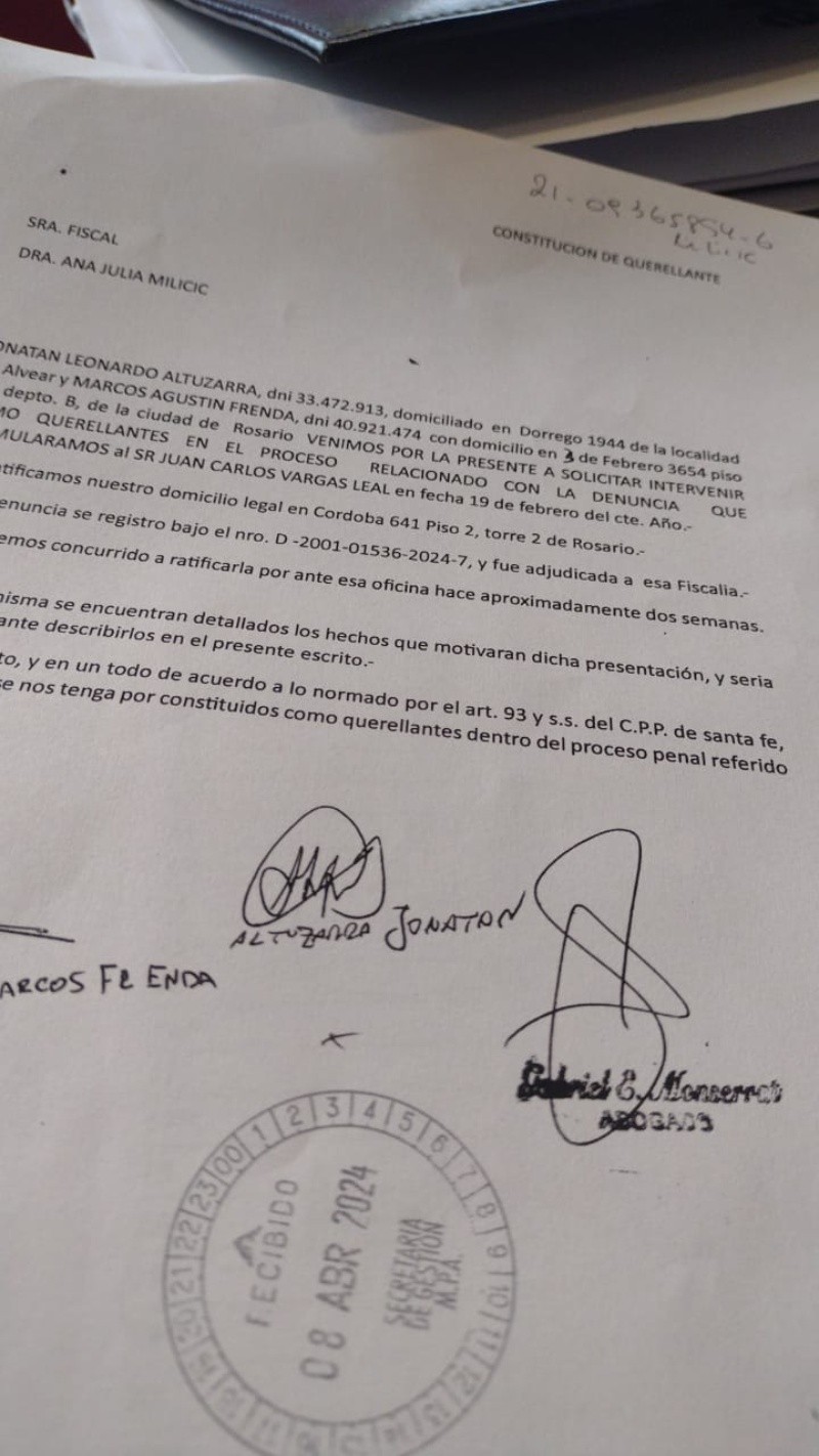 ¿Y el frente penal? La novedad es que las 3 denuncias contra Juan Vargas fueron unificadas y remitidas a la Unidad de Delitos Complejos a cargo del fiscal Miguel Moreno. Y además el abogado que las impulsa, Gabriel Monserrat pidió ser querellante de la causa, convencido de que solo moviéndola desde adentro puede avanzar.