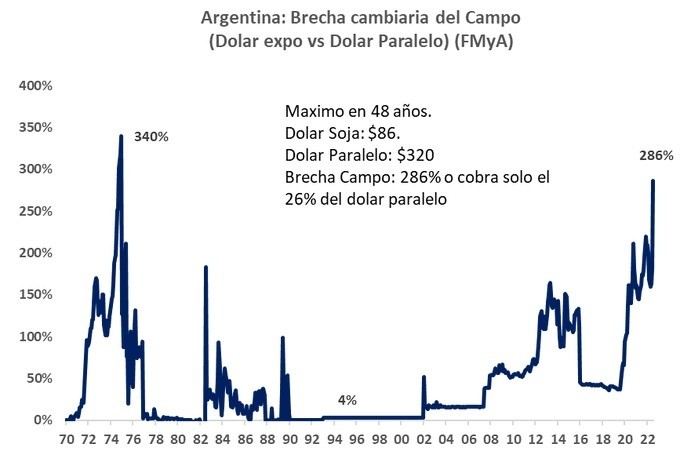 En efecto, es por esa brecha (que en el campo es mayor porque debe agregarse el descuento por el pago de las retenciones) y no por razones ideológicas, es que el agro no vende y tiene unos 3.000 millones de dólares en granos acopiados en silos y silobolsas.