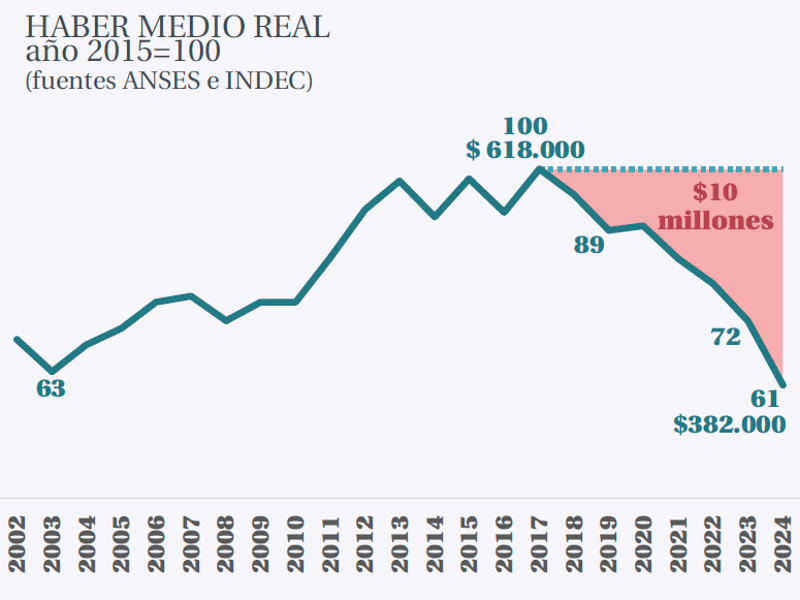 En el caso de los jubilados, hace tres gobiernos que pierden, incluídos los de Macri y Alberto Fernández: "La jubilación media actual, es 39% menor a la de 2015".