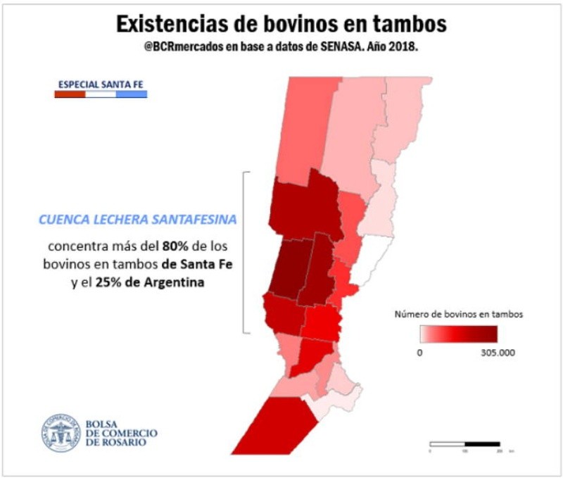 Santa Fe tiene una fuerte presencia de las empresas lecheras líderes del país, que tienen plantas en la provincia. En la región se trabaja mayormente con cría mediante pastura y "no hay muchos animales encerrados en establos", destacó Theiler.
