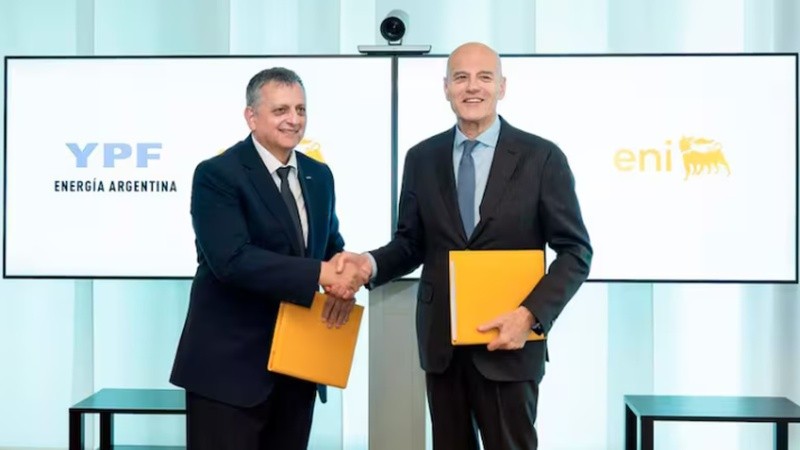 La petrolera YPF dio un paso más hacia su objetivo de desarrollar el gas natural licuado (GNL) argentino. El presidente y CEO de la compañía, Horacio Marín, firmó esta mañana un nuevo acuerdo de ingeniería final para el proyecto que lleva adelante junto a su par de Eni, Claudio Descalzi, la empresa italiana con fuerte interés en el país. Es el paso previo a la decisión final de inversión (FID, por sus siglas en inglés), que esperan que esté listo para el primer semestre de 2026.