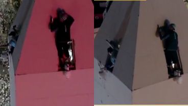 De acuerdo al video compartido por la señal de televisión, fueron al menos tres los hinchas que subieron hasta la parte más alta del Obelisco ubicado en la Plaza de la República. Impactados por las imágenes, los comentaristas en el estudio advertían que los hinchas tuvieron que haber vulnerado la puerta de acceso para conseguir subir por el interior los 68 metros de altura que mide la estructura.