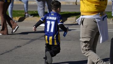 Entre miles de camisetas, cábalas y la ansiedad propia de cada clásico, sobresalieron los números 11 de Ángel Di María, que este sábado juega el primer derby tras su regreso a la ciudad y al club de Arroyito. Un artista pintó la cara de Fideo sobre la calle.
