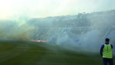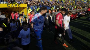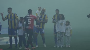 Cinco minutos antes de la hora pactada para el comienzo del clásico rosarino, los equipos de Central y Newell's salieron por el túnel del Gigante de Arroyito hacia la cancha, con cerca de 50 mil almas canallas que le dieron un marco realmente impactante e impresionante al partido.