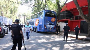 Después de que se detectaran tóxicos y cenizas en el vestuario visitante, el plantel de Rosario Central arribó al Coloso Marcelo Bielsa para disputar el clásico ante Newell's. El micro canalla estuvo rodeado por varios efectivos policiales.
