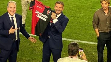 En medio de una gran felicidad, el exjugador de Manchester United, Real Madrid y la selección de Inglaterra, terminó mostrando una camiseta de Newell’s que alguien le hizo llegar desde las tribunas.