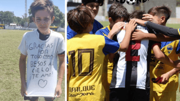 Al finalizar el encuentro, Luca lució debajo de su camiseta con el N°2 una remera con un tierno mensaje con dedicatoria especial: “Gracias por todo mami. Besos al cielo, ¡te amo!”.