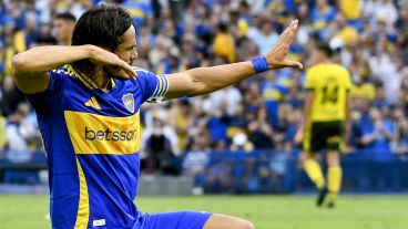 El equipo de Fernando Gago abrió el marcador en su primer ataque del partido. A los ocho minutos de la primera parte, un pase filtrado permitió que el volante chileno Carlos Palacios avance por derecha y ponga el centro buscapié para la llegada de Cavani, libre por el segundo palo, para empujar la pelota y convertir el 1 a 0.