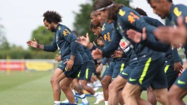 La canarinha estuvo dividida en dos grupos: por un lado estuvieron los futbolistas que golearon por 3-0 a Australia el pasado domingo, mientras que del otro estuvo el resto del plantel.