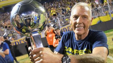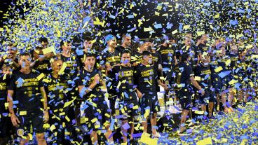Los futbolistas campeones y el técnico Miguel Russo, con remeras azul oscuro con la inscripción de “campeón argentino” en amarillo en el pecho, volvieron a celebrar el título. Como ocurrió en diciembre pasado, primero en Santiago del Estero y después en la ciudad, aunque esta vez nada menos que en el estadio donde construyó gran parte de la campaña –lleva 29 partidos invicto– que lo condujo a la gloria. Y, claro, alzaron nuevamente el trofeo antes de dar la vuelta.