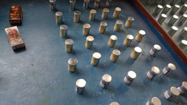En el operativo llevado a cabo por la Sección Neutralización de Explosivos los agentes incautaron 40 tortas de humo amarillo y azul, 4 tortas pirotécnicas, 48 bombas de estruendo y media docena de bengalas.