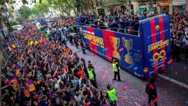 El Barcelona celebró este lunes el octavo doblete de su historia con el ya tradicional recorrido urbano por las calles de la ciudad, en un festejo que congregó, durante dos horas, a decenas de miles de aficionados culés, entregados a un equipo que ha sabido reponerse de su doloroso e inesperado tropiezo en los cuartos de final de la Champions, ganando Liga y Copa.