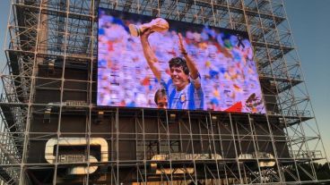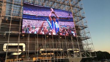 La pantalla mostraba desde la tarde –y permanecerá así por algunos días– diferentes fotos de Diego en su consagración como campeón del mundo con Argentina en México 86, así como en su etapa de entrenador de la selección en el Mundial de 2010.