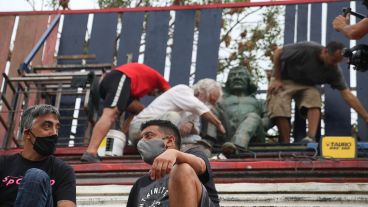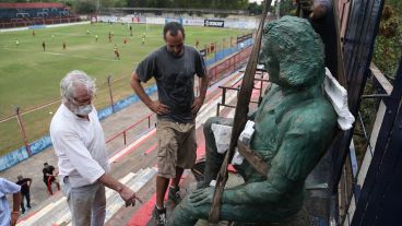 Además de Giustiniani, en el emplazamiento, estuvo el escultor de la obra, Marcelo Castaño Perouch, autoridades del club, y familiares del Trinche.