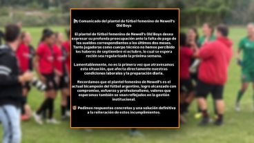 La crisis en Newell's sigue creciendo y ahora el femenino rojinegro también reclama por el atraso de pago salarial. Las bicampeonas dirigidas por Leandro Iglesias, emitieron un comunicado en el que expresaron su malestar luego de conocerse la misma situación del plantel de Primera división del masculino y la de los empleados del club.