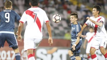 Argentina derrotó el martes a la noche a Perú 3 a 0, por la tercera fecha del Grupo B del Sudamericano sub 17 de fútbol que se juega en Chile, clasificatorio para el Mundial de India, y mantuvo viva su esperanza tenue de pelear por un pasaje tras las dos derrotas con las que empezó el certamen.