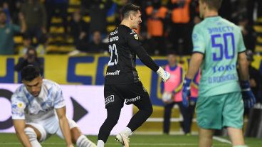 El árbitro Penel se tomó su tiempo para cobrarlo. Mejor dicho, lo volvió a llamar el VAR porque no había notado la infracción. Cuando el juez empezó a caminar rumbo al monitor, el arquero canalla Gaspar Servio ya tenía le pelota en la mano y esperaba en el área rival para rematar.