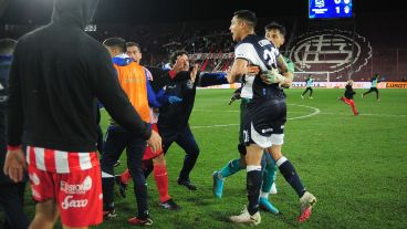 Los suplentes del “Lobo” fueron agredidos a patadas y la seguridad del estadio debió actuar y separó a los dos planteles. El protocolo fue ejecutado antes que ingresen los hinchas al terreno de juego.