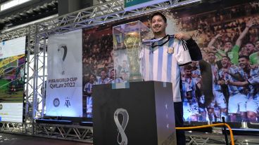 La muestra "Eternos laureles", llega a la ciudad a partir de una iniciativa del gobierno de Santa Fe, la Municipalidad de Rosario y Lotería de Santa Fe, y permite a las rosarinas y rosarinos, fotografiarse de forma gratuita con los galardones obtenidos por la selección nacional en los últimos años.
