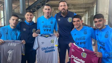 Por el lado de Rosario Central, los invitados a la ceremonia fueron Jorge Broun y Alejo Véliz, acompañados por algunos directivos. Luego, aprovecharon para tomarse algunas fotos con viejos conocidos: Ángel Di María, Giovani Lo Celso, Facundo Buonanotte y Lautaro Blanco, todos de semilla auriazul.